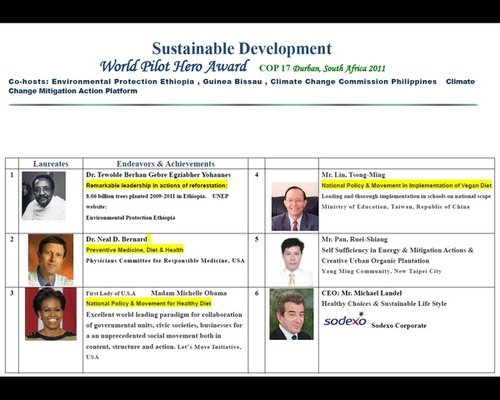 *COP17永續發展英雄獎 台灣獲5項2011/1210中央社