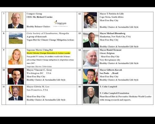10-15.抗暖化全球無肉日導航城市:美國-華盛頓市長, 美國-舊金山市長, 南非-開普敦市長, 美國-紐約市長