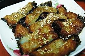 4.放在蒸籠裏蒸熟或下油鍋炸酥脆。炸時要用小火慢慢炸。