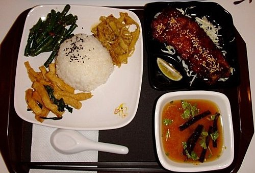 圖2. 愛家的漫波排飯的素鰻魚煎得很好吃,