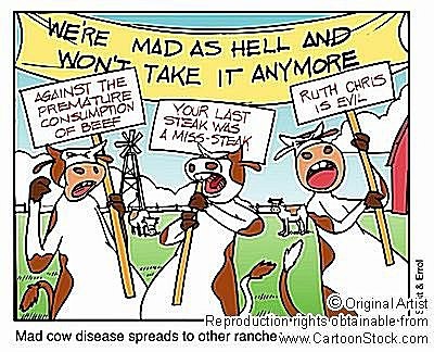 狂牛病 Mad Cow Disease (BSE) = 羊 搔癢症Scrapie = 貂 傳染性腦病Transmissible mink Encephalopathy TME = 鹿 慢性消耗病CWD; = 貓科海綿狀腦病 FSE = 人 新型庫賈氏症