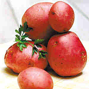 圓形紅馬鈴薯:夏末和秋初才有。紅表皮,果肉白色,堅實、光滑和濕潤質地,適做沙拉。成熟前就可以收穫。