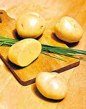 黃果肉馬鈴薯:原産歐洲,果肉明亮金黃色。夏末秋初才有。細密、滑膩質地,金黃色讓人誤以爲加奶油在裏面。