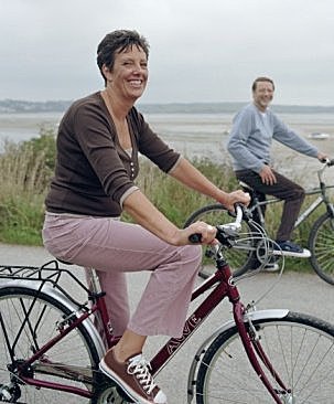 圖1.理想坐墊高度:(右腳)踩在踏板最低點時,腿腳未打直;