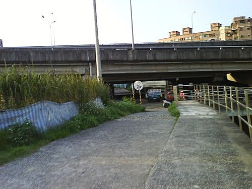台北縣草濫溪抽水站<->涼亭間 有段斜坡路被防水牆&電線桿擋到視線