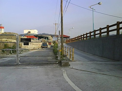 過社后抽水站之右岸 在對面抽水站旁的電動鐵柵門縫(左岸)裡進入鐵馬路