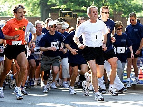 美國總統布希堅持跑步身體好對美國人來說,總統布甚堪稱他們運動及鍛鍊身體的楷模。布甚的習慣是在健身房利用健身器材及跑步機強身,他的重量訓練還包括坐姿推舉、擴胸與擴背運動。因工作繁忙,布甚經常利用一切可以利用的空隙跑步。