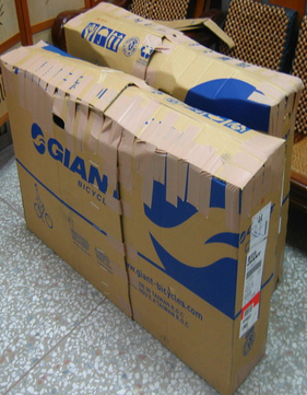 圖. 用單車店紙箱包裝:需拆把手與前輪,另外固定!